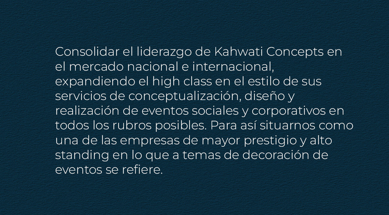 Llevo más de 9 años de experiencia trabajando con marcas, organizaciones y celebridades, dándoles respuesta a sus necesidades desde el compromiso, con el único propósito de elevar las emociones del evento, ofreciendo experiencias visuales, cómodas y funcionales, pero siempre con conceptos únicos, con clase, estilos modernos y de alto nivel. Kahwati se especializa en el levantamiento visual de proyectos de decoración y producción de eventos, utilizando planos renderizados para que los clientes puedan apreciar la idea y su resultado final en formato digital. Ofrece un servicio completo de dirección creativa para diseñar eventos, con énfasis en la armonía, los detalles de lujo y su pasión por los colores, texturas y formas. Su objetivo es proponer una guía de estilo para materializar las ideas creativas de cada evento y empatiza con sus clientes para hacer de cada celebración un espectáculo inolvidable. Entre sus experiencias destacan la planificación y diseño de la boda eclesiástica de la Miss Universo 2013 María Gabriela Isler y una celebración de cumpleaños de la modelo venezolana Ninoska Vázquez. En resumen, Kahwati es diseño, estética conceptual y decoraciones que evocan emociones.